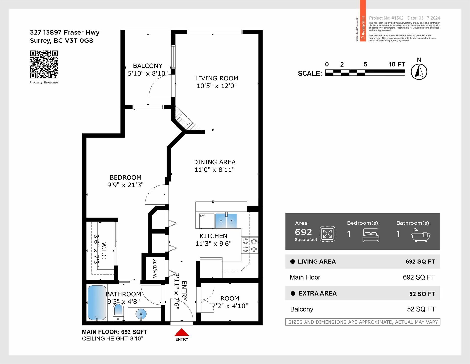 - Square Feet: 692 sqft